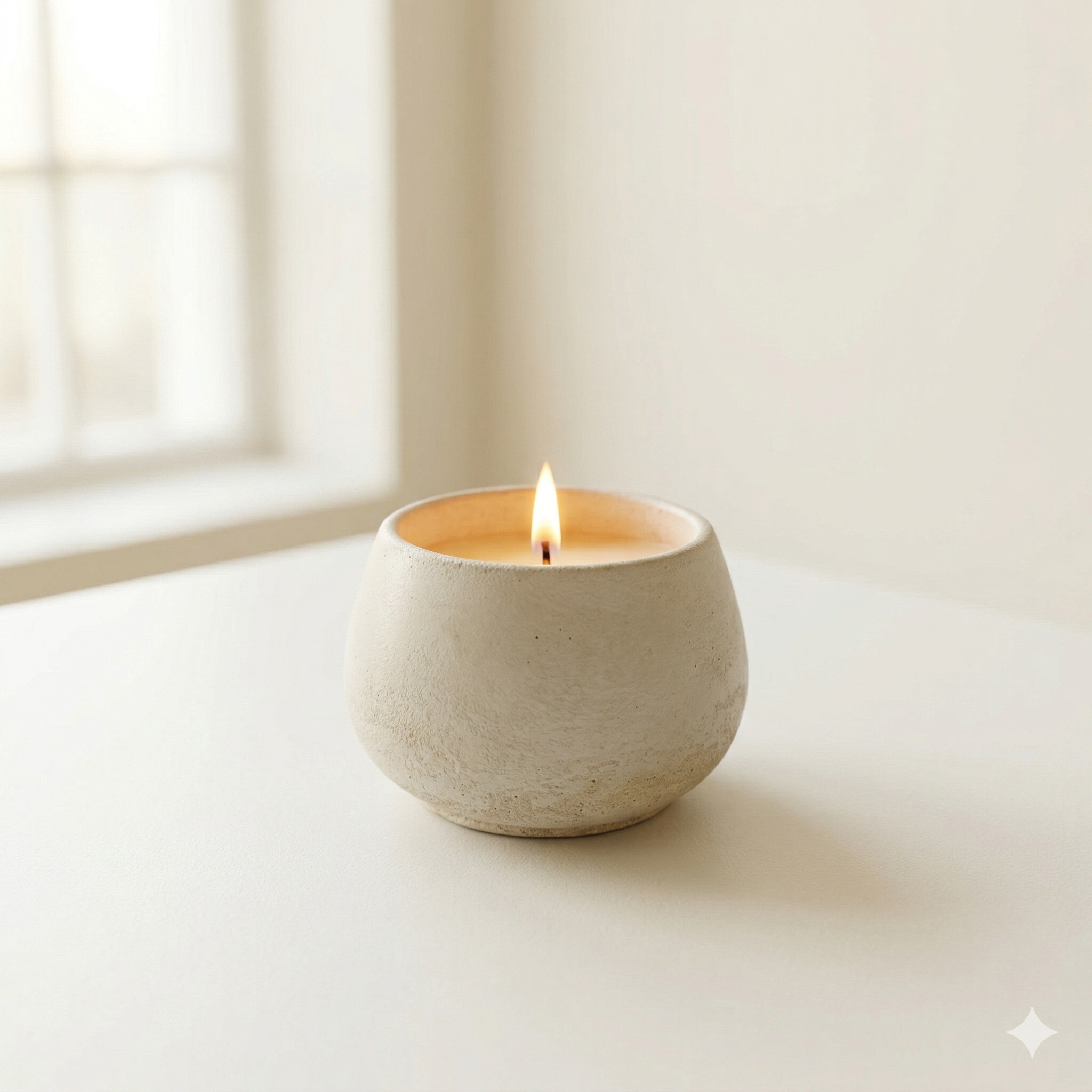נר ריחני עטוף בבטון עגול. הצורניות הביומורפית מעניקה לנר חזות המשרה רוגע ונינוחות בבית.